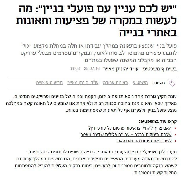"יש לכם עניין עם פועלי בניין": מה לעשות במקרה של פציעות ותאונות באתרי בנייה.